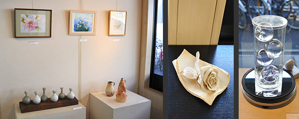 この展覧会は、趣味で制作を楽しんでいる方とプロの作家による「花」を主題とした展覧会です。油絵・日本画・水彩画・版画・デッサンから陶芸・彫刻まで様々なジャンルの「花」をモチーフにした小作品を多数展示いたします。 |