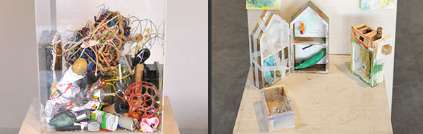 ポストカードサイズに描いた『てれどろ』と『てれどろ受信機』を展示します。